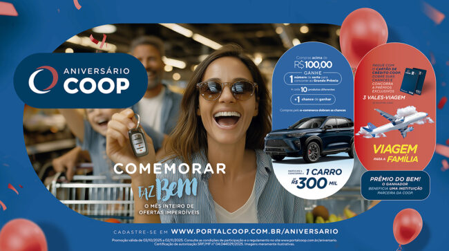 Celebrar a história, fortalecer o cooperativismo e proporcionar uma excelente jornada de compras aos cooperados e clientes serão os pilares de sustentação da nova Campanha de Aniversário da Coop – Comemorar Faz Bem – em celebração aos 71 anos de fundação. No período entre 3 de outubro e 2 de novembro todas as unidades de…