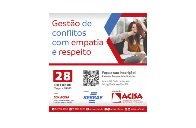 Gerir conflitos com empatia e respeito é uma habilidade essencial para o sucesso empresarial. Mais do que resolver problemas, essa postura contribui para construir relações de confiança, promover compreensão mútua e criar conexões mais harmoniosas no ambiente de trabalho. Para tratar desse tema, a ACISA – Associação Comercial e Industrial de Santo André sediará uma…