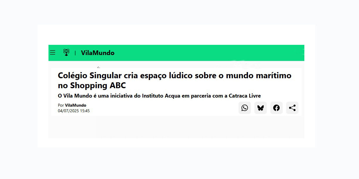 Com a proposta de promover às crianças e suas famílias uma verdadeira aventura submarina, na sexta-feira (4 de julho), a partir das 12h, o Colégio Singular abrirá ao público o Singular Ocean Play, edição 2025 do tradicional projeto Singular Play, que ocupa uma loja inteira no Shopping ABC, em Santo André. O espaço tem 200 metros quadrados e está localizado no Piso 1.