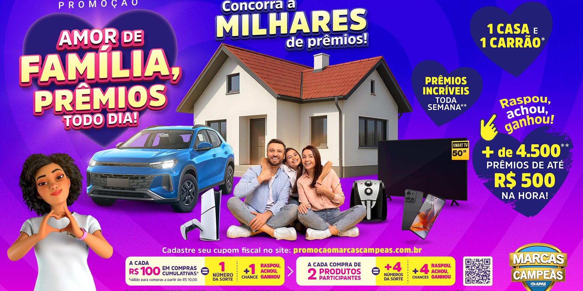 Com o mote “Amor de família, prêmios todo dia!”, a campanha contará com sorteios semanais e prêmios instantâneos, incluindo uma casa e um carro, além de mais de 5 mil prêmios de R$ 500, distribuídos por meio da mecânica “Raspou, Achou, Ganhou”.