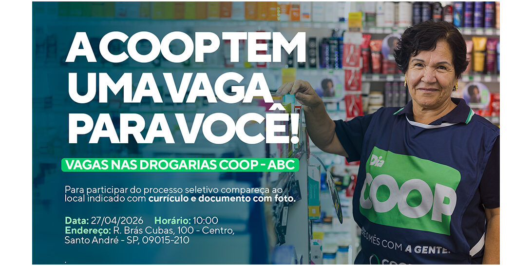 Como parte de seu plano de expansão e formação de banco de talentos, a Coop promove na próxima segunda-feira (27), às 10h, um feirão de empregos voltado ao preenchimento de vagas no negócio Drogaria.